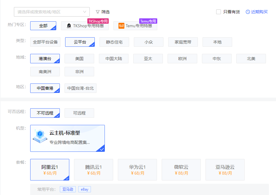 【云平台】:如果已经拥有店铺并进行日常运营,云平台ip提供了极高的稳定性和流畅的操作体验,性价比更高。