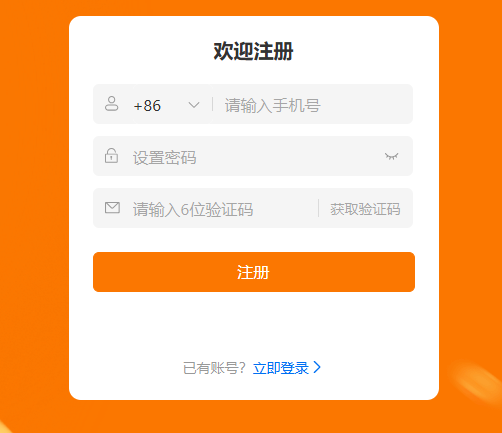 按页面提示填写手机号、设置密码、获取验证码,完成账号基础创建。